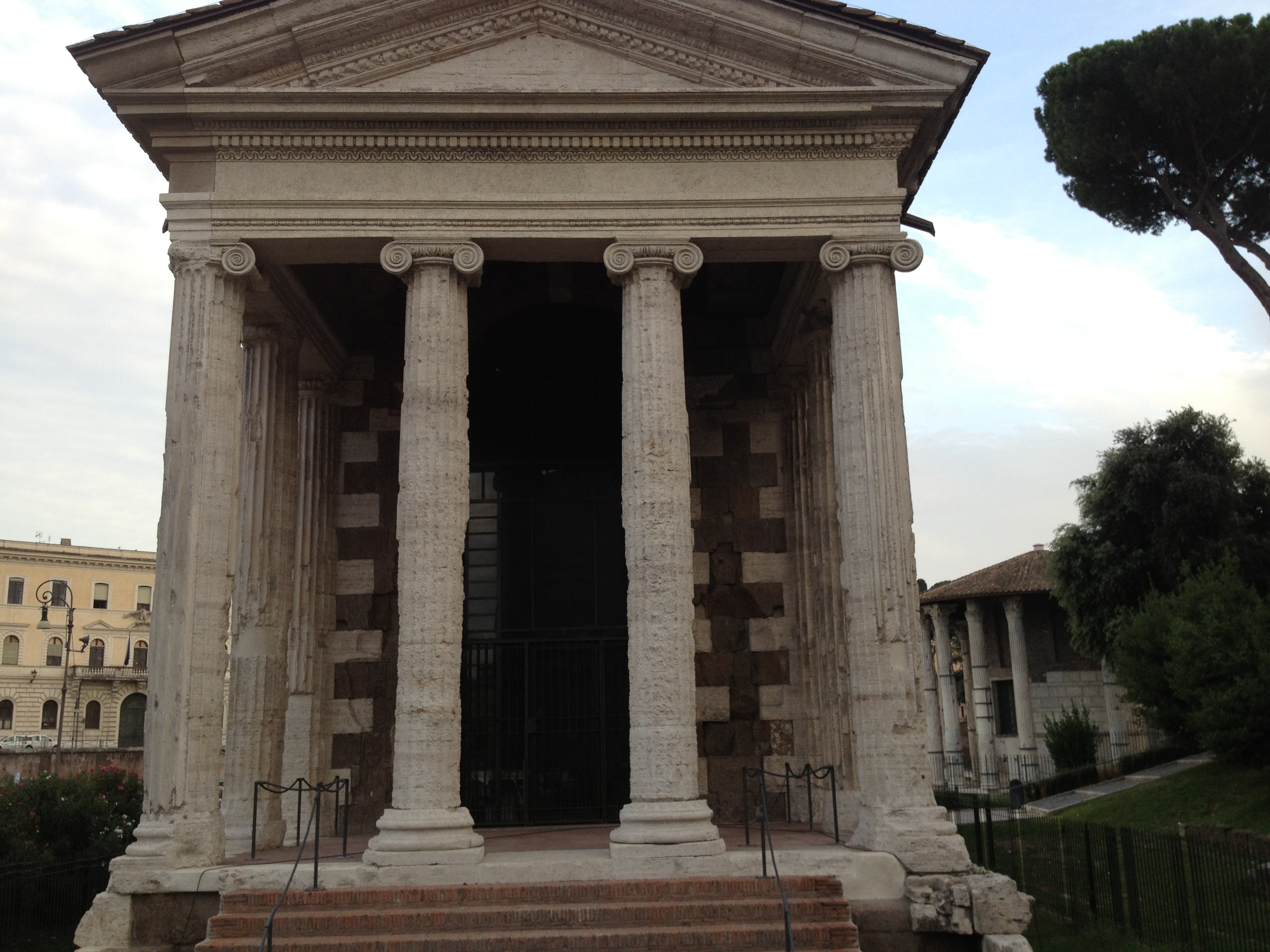 Republican temple by the Tiber River dating from the 2nd century BCE combining Greek and Roman elements. Preserved when turned into a church in the Middle Ages. The round temple that you can see to the right is a perfect example of the Roman use of concrete. This small forum contains structures that date from the Roman era to the Middle Ages that can all be seen from one vantage point.