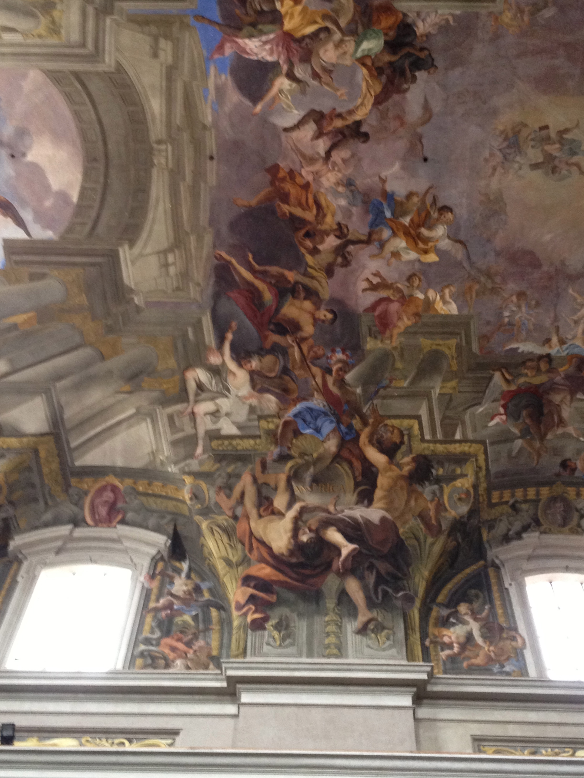 Here you can see some of the remarkable work in this fresco. I did not know exactly where this church was but once I saw it, I knew what was inside so we went in and were overwhelmed with the beauty of the ceiling.