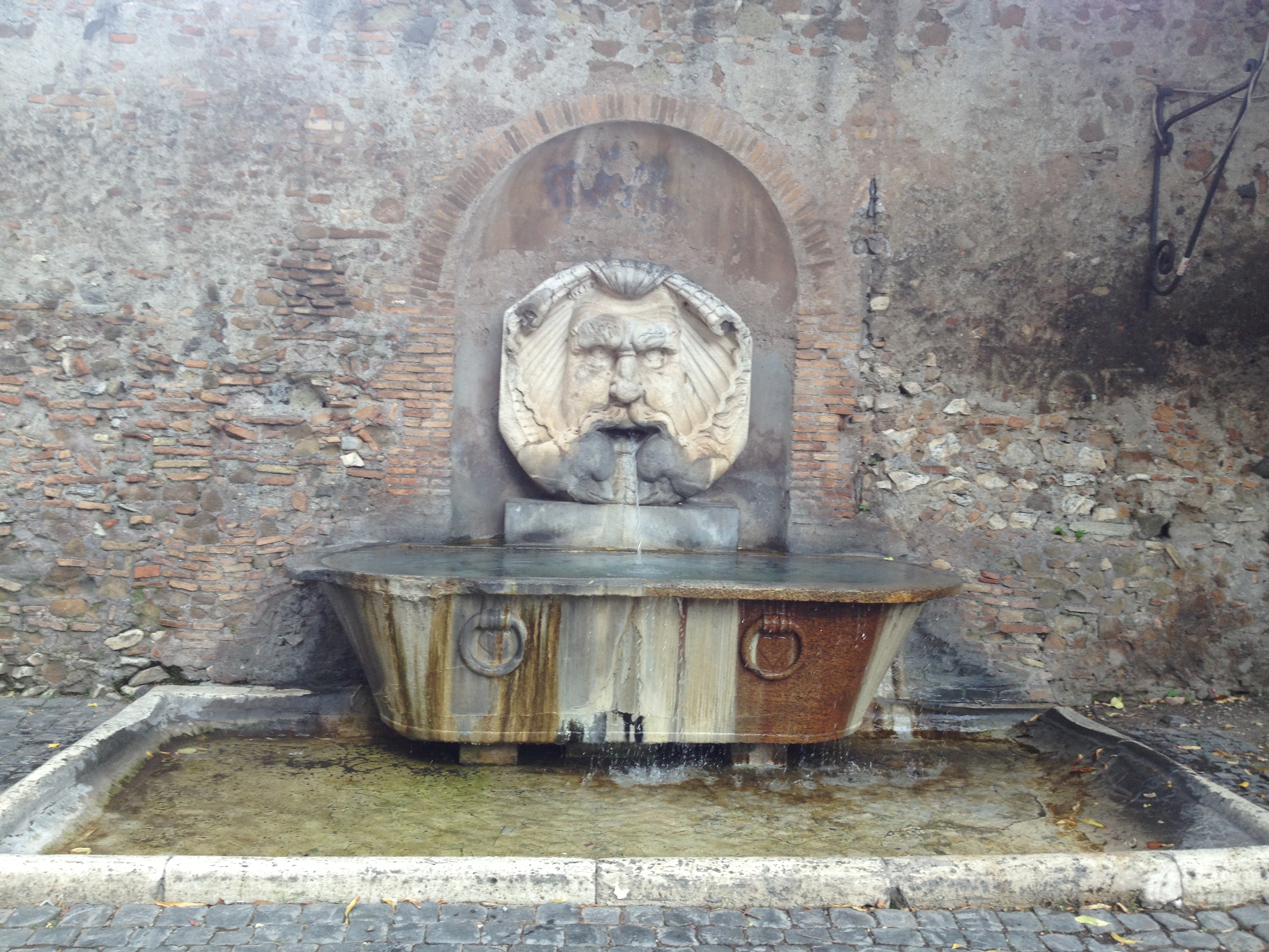 The water is still good in Rome so many centuries later and there are many fountains throughout the city. Here what may have been a drain cover from the 4th century CE is turned into a fountain (of truth). We saw some people drink though we refrained. The legend goes that the mouth would snap shut over the hand of anyone who told a lie.