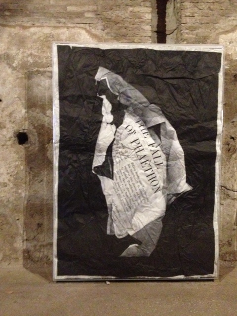 This work consisted of many panels all featuring parts of newspapers. It was located in a tunnel called the cryptoporticus. How about that for a scrabble word.