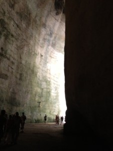 Given its name by Caravaggio in 1586, this cavern is 65 meters long and 25 meters hight. It spirals into a “S” shape before coming to a dead end. It has amazing accoustical properties, a whisper at one end can be heard at the other end.