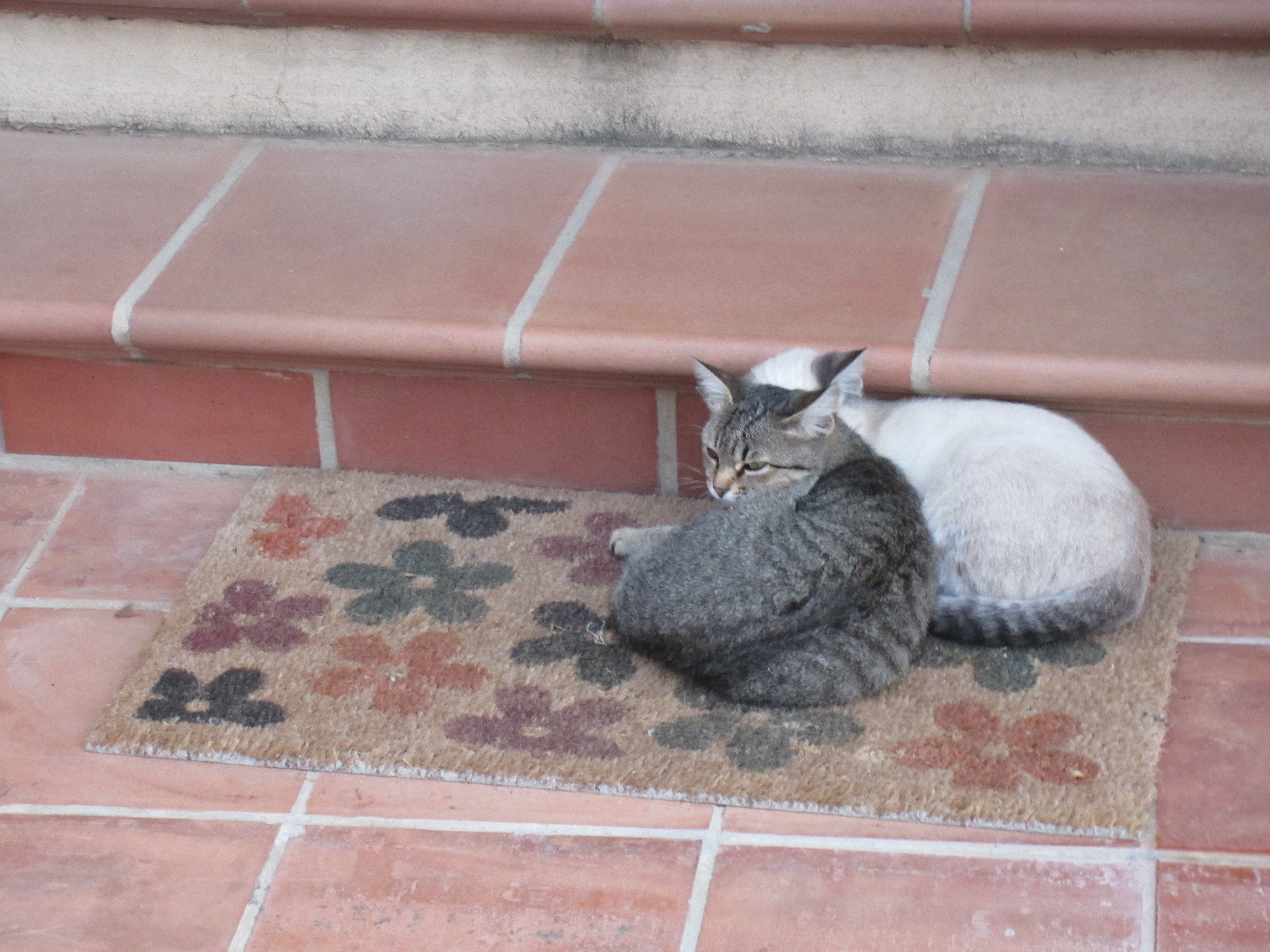 Cats Posted on September 23, 2013 by mcohen15 These two made their home on our doormat all day (actually there was usually one more) until the restaurant was open.