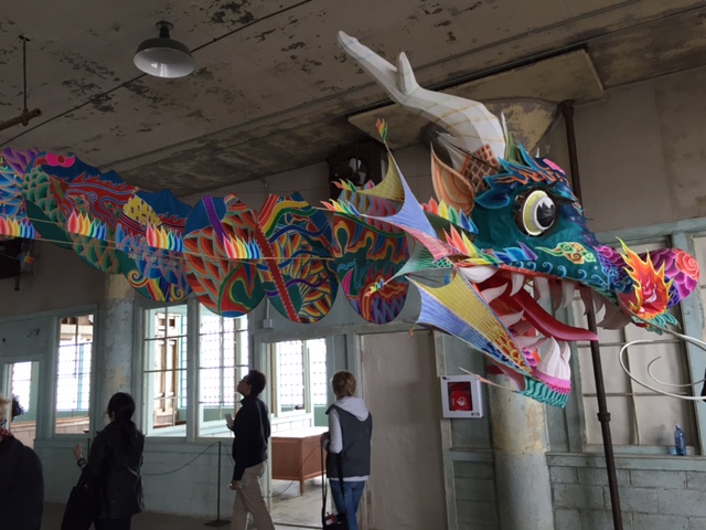 Ai Wei Wei is a dissident Chinese artist who is currently forbidden by the Chinese authorities from leaving the country.  He is essentially under house arrest for his criticism of the government, especially about the earthquake in which many schools collapsed killing thousands of children because of shoddy construction.  The combination of Ai Wei Wei’s work and Alcatraz, the former prison in the San Francisco bay transforms the space into a theatrical presentation about what it means to be imprisoned especially for “speaking out” and a yearning for personal freedom and freedom of expression. The exhibition will be on Alcatraz until mid April 2015.