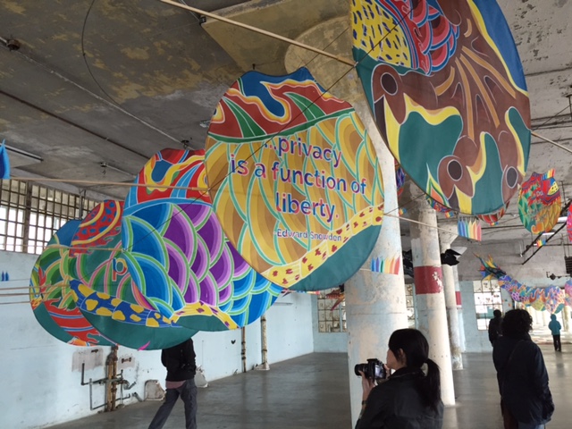As you enter the first room of the Industrial Arts building you find the giant dragon head of an enormous traditional Chinese kite that occupies the entire space. One thinks about kites flying freely in the air, while this one and other small ones in the room are confined and will never have the ability to fly.