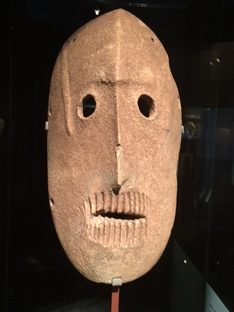 One way to tell if mask was used for ceremonial purposes to to look at the back to see if there are wear marks and to see if the facial features line up.  This exhibit allowed the viewer to see both sides.