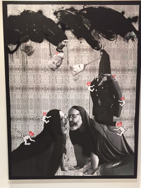 The second museum we visited has a unique focus.  It’s called Museum on the Seam: A socio-political contemporary art museum.  It’s housed in a former army outpost on the former border (seam) between Israel and Jordan.  It was built in 1932 by the Barmki family and stands near the Mandelbaum Gate, the only entry into what was until 1967 the divided city of Jerusalem.  The museum was founded by Raphie Etgar, whose goal was (and is) to show art that addresses human rights and civic engagement.  The show we saw was “And the Trees Went Forth to Seek a Queen”: our relationship to leaders both public officials and charismatic religious and social leaders.