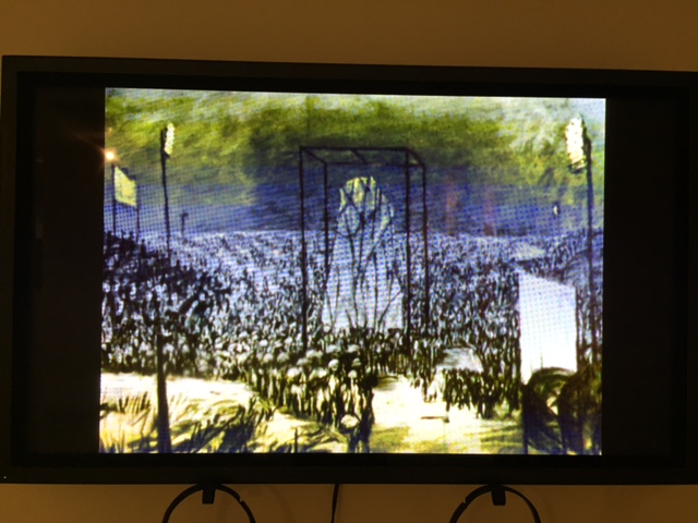 There were a number of video works in the show and this one had the soundtrack for the song.  It is portraits of Kim Jung Il and his son Kim Jung Un of North Korea.