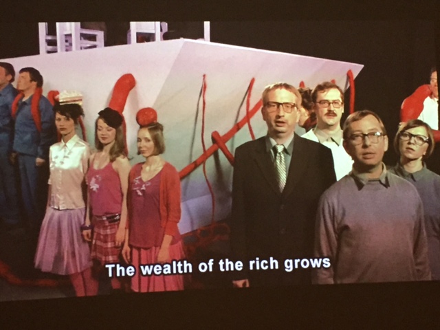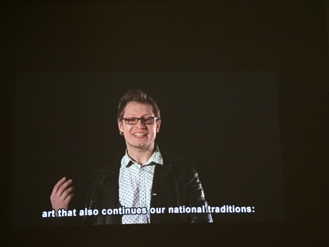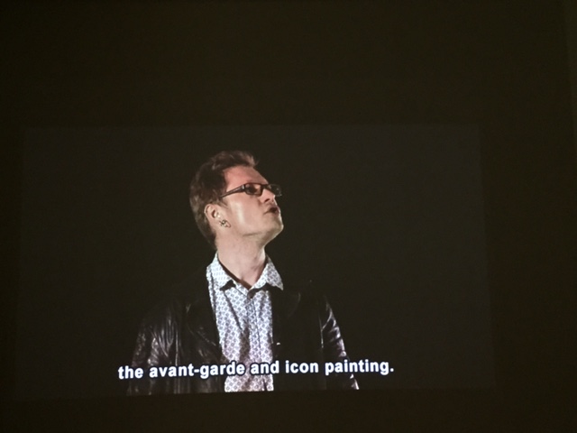 There were a number of video works in the show and this one had the soundtrack for the song. It is portraits of Kim Jung Il and his son Kim Jung Un of North Korea.