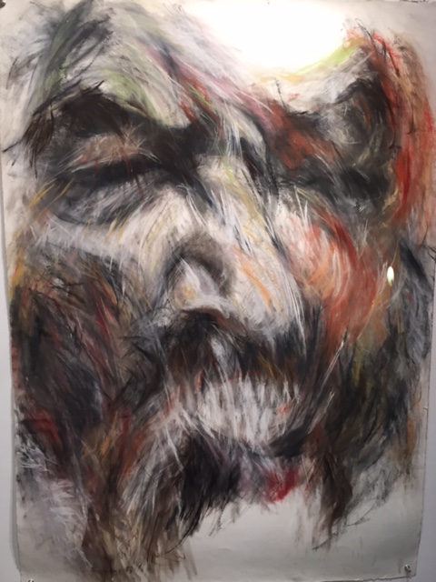 Three portraits in pastel of Meir Kahane, the controversial leader of something he called the Jewish Defense League that was racist and advocated violence against non-Jews.  He was assassinated in New York.