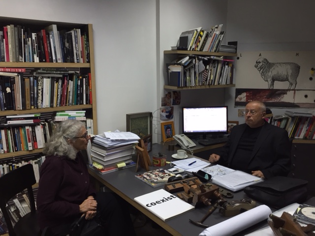 As we were leaving the museum, we met the director/curator Raphie Etgar who gave us the sad news that the benefactor (a German non-Jewish family) who has been the sole support of this museum has decided to no longer fund it.  He had just received this news himself and we could tell he was still in shock.  It looks like the museum will have to close at the end of this year.  Very sad, especially at such a difficult time in peacemaking in this part of the world. The last image in the blog is a photo of us in his office talking about this sad situation and how they might continue their valuable work.  We discovered that this museum is responsible for the “Coexist” exhibit that traveled the world and you are likely to have seen the bumper stickers even in our small town of Mendocino.  Check out the museum’s website to learn more.