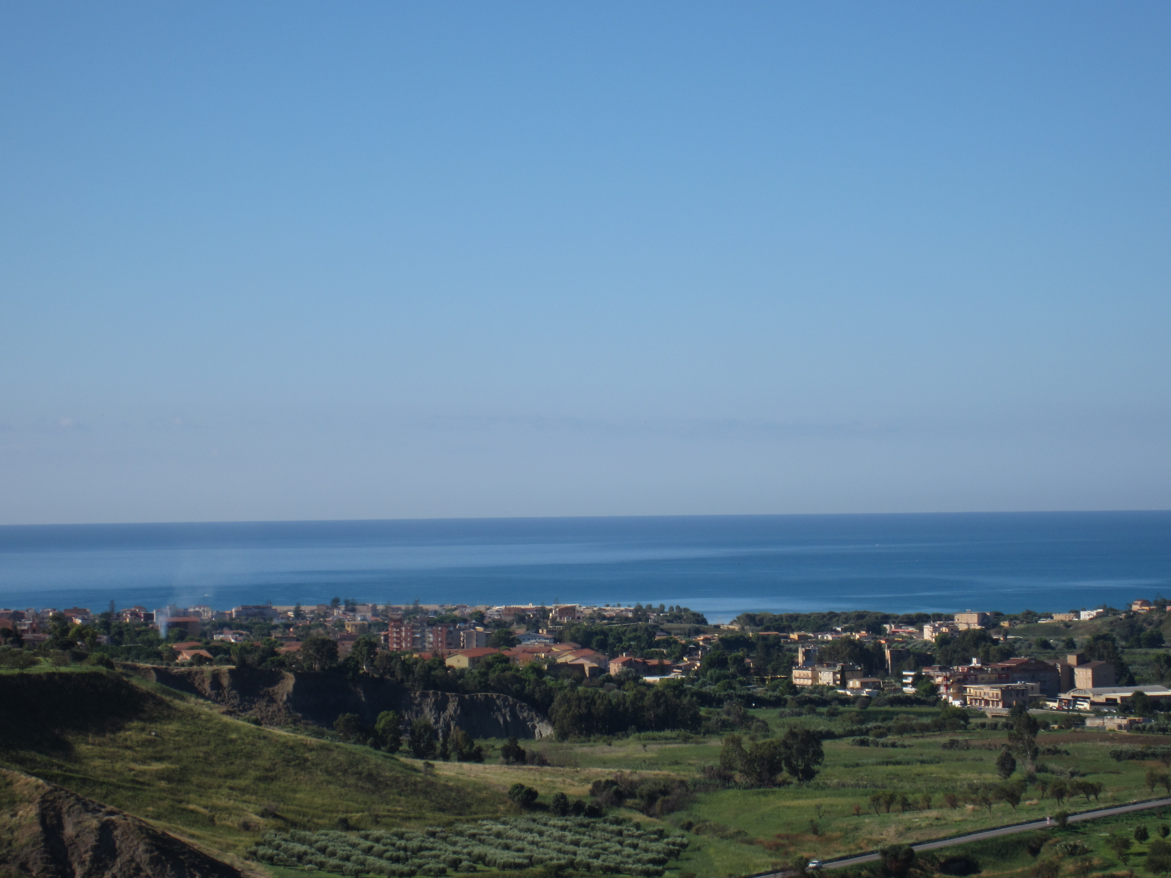 If you look at the waters’ edge you will see a little gap. That is where two rivers that had joined higher up flowed into the ocean. This is where the Greeks situated their port to bring goods to the colony and to export as there was quite a bit of trade in the Golden Age of the colony. This area was heavily forested and the Romans denuded virtually the entire island of Sicily for the wood to build ships, etc. It changed the climate permanently. The rivers are a fraction of what they were if at all and it is a very arid climate. Let that be a lesson to anyone who doesn’t believe in climate change. We did see lots of solar panels, windmills, but pollution as well.