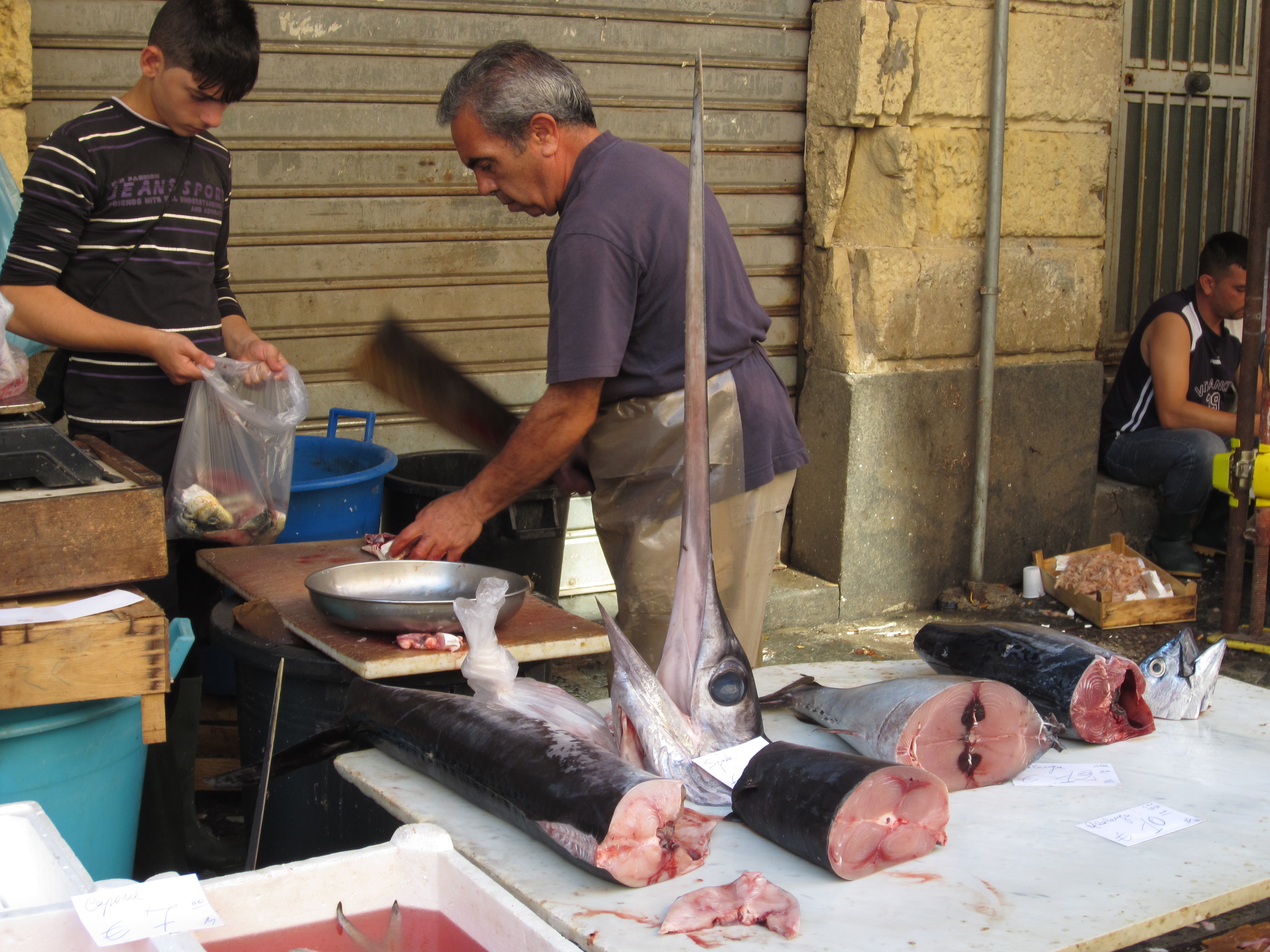 Swordfish is one of the most common fish served in restaurants in Sicily. I have to say, if you are not a fish eater, you would struggle in Sicily. We found it interesting that we saw chickens in the market but none on any menu in all of Sicily. It was seafood or beef (not very good)and vegetables and pasta of course and lots of gelato!