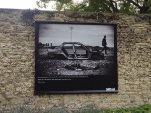 In a place that is at peace after suffering so much for centuries, it’s important to remember that in other places things are not so peaceful. Throughout Bayeux right now there is a photo exhibition of large billboard sized photographic panels of photographs from the conflict to liberate Mosul, Iraq. It’s a reminder to all of us what war continues to do. We also visited the Memorial to the Reporters that is in a beautiful garden setting, that lists the names of all reporters who have lost their lives from 1944 to the present. The plaque at the entrance says: This place is dedicated to reporters and to freedom of the press. It is unique in Europe, firing a walkway among white stones engraved with the name of journalists killed all over the world since 1944. This project by the town of Bayeux and the organization Reporters Without Borders was inaugurated in 2007 by Rama Yade, Junior Minster for Human Rights and Patrick Gomont, mayor of Bayeux.