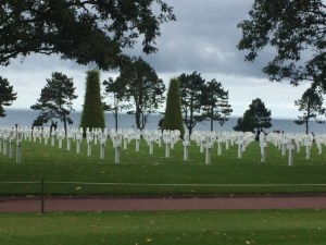 We visited Omaha Beach and the American cemetery, the site of the D-Day landings on a gloomy and drizzly day. It seemed appropriate for the experience. Before coming here it didn’t really hit me how many young people gave up their own futures so that we could have one, and went off to a place where they knew no one thousands of miles from their own homes that at that time were not actually threatened. At the same time I’m thinking about the fires close to our home and just a tiny taste of what it might feel like to be endangered. The people of Europe were suffering immeasurably and Americans helped relieve their suffering.
