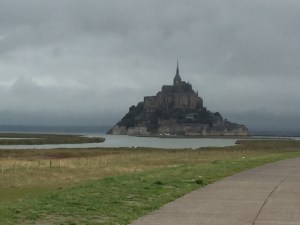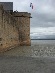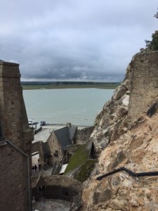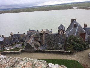 Mont Saint Michel is surrounded by a mudflat and the tidal change along the coast is big so for periods of time it’s possible to “walk” out to the island. In 1878 a causeway was built that allowed pilgrims to come and go regardless of the tide. It increased the flow of visitors but blocked the flow of water around the island. The result was that much of the bay silted up and the island was rapidly becoming part of the mainland. The original purpose of providing a haven for monks and its uniqueness was disappearing. In a major engineering and environmental project French engineers with help from their Swiss and Dutch counterparts began a massive reclamation project building a dam upstream on the river to collect water during high tide and flush out the bay at strategic times and a bridge was built to replace the causeway which had been solid.