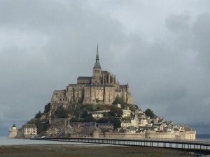 Mont Saint Michel is one of the most photographed sites in France and gets more than 13 million visitors a year. It rises atop a very small island at the tip of Normandy and as you might expect there’s a bit of a rivalry between Normandy and Brittany over who it belongs to. It is one of the four most visited religious sites in Christianity though mostly tourists outnumber the pilgrims these days. In 708 Bishop Aubert of Avranches, is said to have had three visions in which the angel Michael commanded him to build an oratory on Mount Tome the closest island to the town. The first two times the bishop ignored him so the angel poked him in the head leaving a dent. Aubert built a small church on the island which rapidly became a pilgrimage site for followers of the angel Michael that had been active since the 5th century.