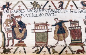 Harold comes to Normandy to tell William that he will be king when Edward dies and he swears allegiance on two of Normandy’s most important reliquaries.