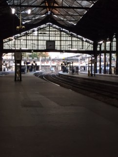 Hard to believe as always that we arrived in Paris less than 24 hours ago and have already done and seen quite a bit.  We took the train this morning to Bayeux in Normandy to begin a week’s adventure in this part of France.  We departed from the St. Lazare train station, the same one made famous by Claude Monet who painted the steam engine trains arriving at this station because it was the station he used to come and go to Giverny, his home along the Seine in the direction of Normandy.  He also painted on the coast here (more about that later in the week).  Monet was particularly enamored with the steam engine because it fit in with his desire to paint en plein air (out in the air “on site”) and to capture a moment in time.  As you can see the station has changed quite a bit since Monet’s time.