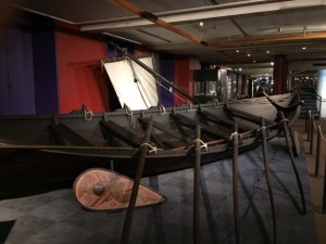 To scale model of a Viking boat similar to the ones used by William in the museum upstairs.